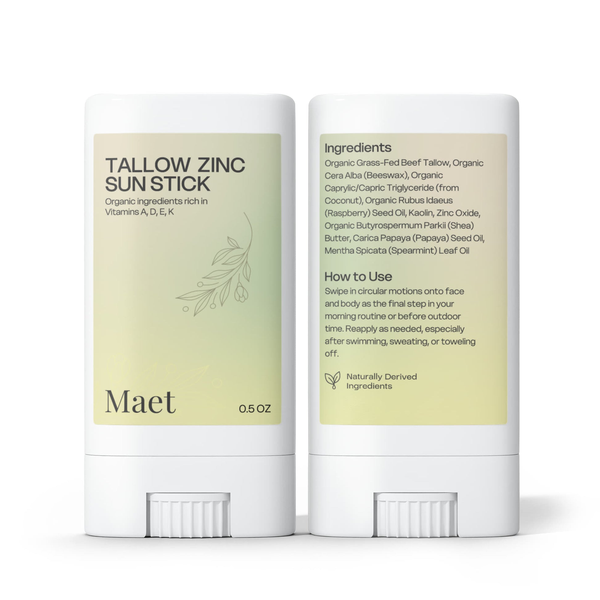 A nourishing balm stick designed to comfort and hydrate skin before and after sun exposure. Crafted with organic grass‑fed beef tallow, antioxidant‑rich raspberry seed oil, non‑nano zinc oxide for a calming barrier, soothing papaya seed oil, and refreshing spearmint oil, this stick moisturizes and comforts your skin. Ideal for all skin types, it’s easy to apply and free of synthetic additives.