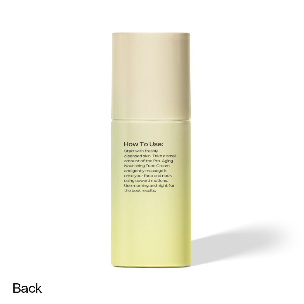 Start with freshly cleansed skin. Take a small amount of the Pro-Aging Nourishing Face Cream and gently massage it onto your face and neck using upward motions. Use morning and night for the best results.