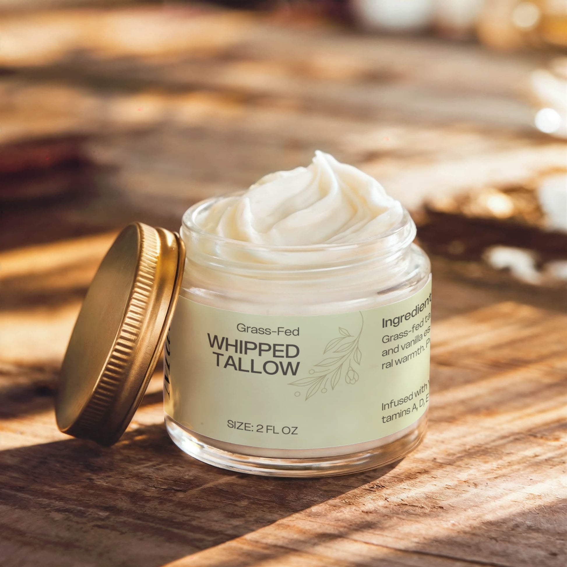Experience the purity of nature with our Whipped Grass-Fed Tallow Balm with Vanilla Bean. Specially formulated with grass-fed tallow and infused with aromatic vanilla bean, this nourishing balm delivers deep hydration, soothes irritation, and promotes skin regeneration—all without synthetic additives.